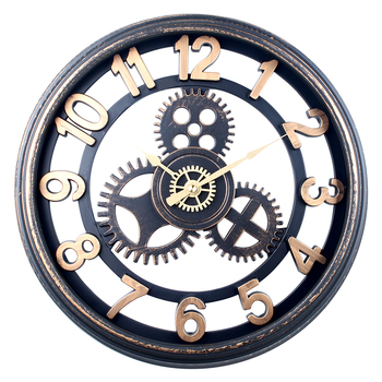 Thắt lưng trang trí phòng khách, bánh răng, đồng hồ treo tường, thời gian im lặng, khung nhựa, gió cơ retro, bánh răng quay